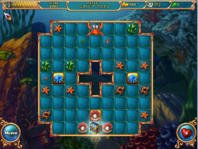 タイルを消して道を作り、上にいるカニを宝箱まで導きます。