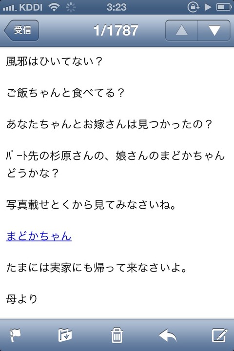リンク先は出会い系のページのようですが、「お母さん」からのメールは新しいかも。