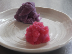 紫芋を蒸したらそれはもう鮮やかな青紫!