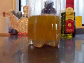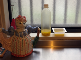 今はとろみのある黄色い液体ですが、これがちゃんと白い石けんになるんですよ~