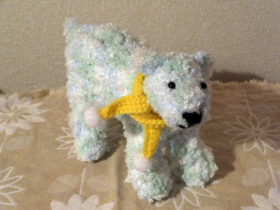 ふわっふわなブークルヤーンで、今度はミントグリーンの白くまを編みました。